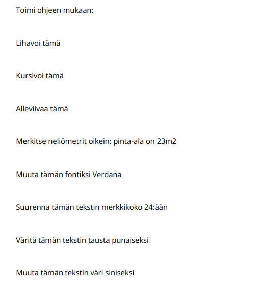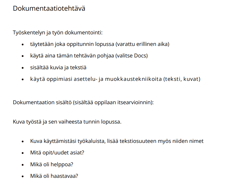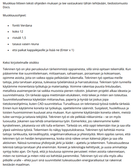 Mukana on myös pohja dokumentointi-tehtävälle ja kaksi asiakirjanasettelutehtävää oppilaille.