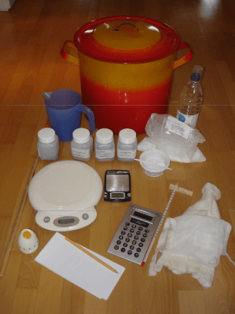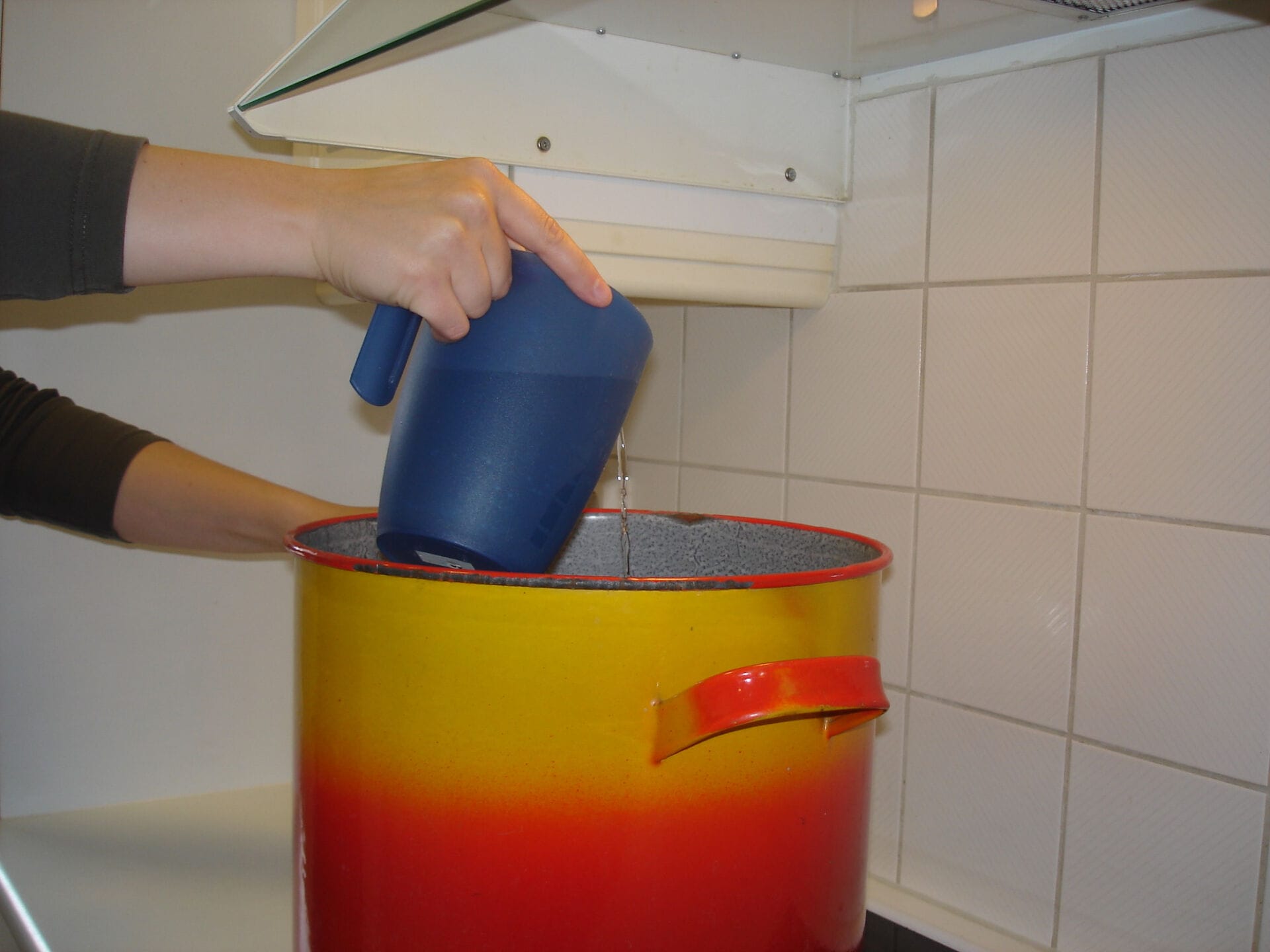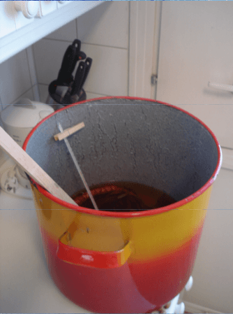 5.Kaada väriliemi kattilaan. Mittaa loput