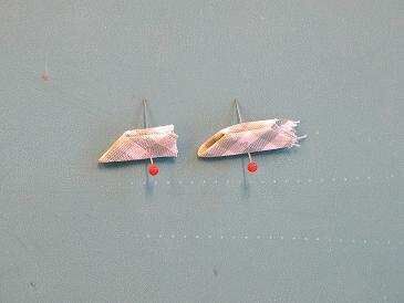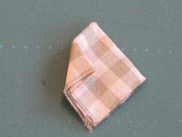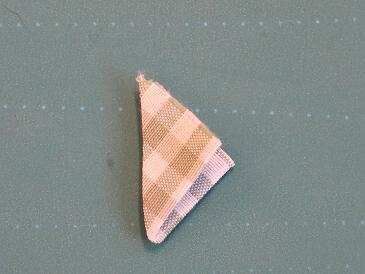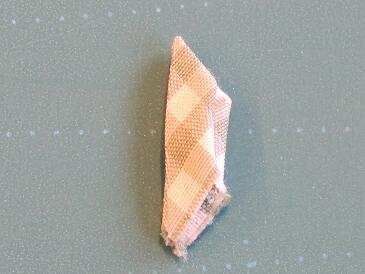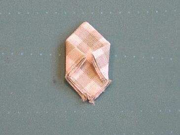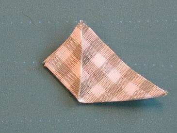9. Taita keskeltä kahtia, kiinnitä nuppineulalla keskeltä, leikkaa rosoinen kulma pois