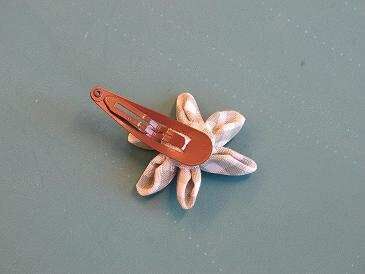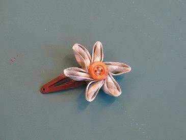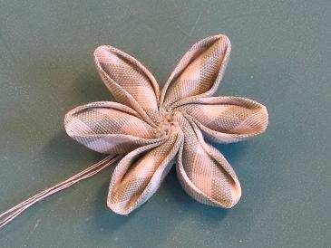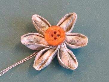 11. Käännä työ toisin päin ja asettele terälehdet ympyräksi, ompele nappi keskelle