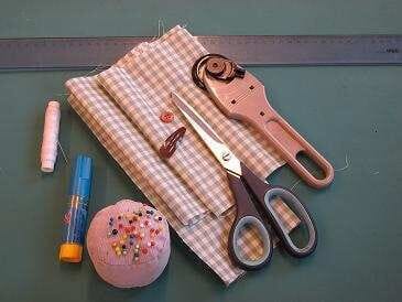 1. Tarvittavat työvälineet: kangasta, mitta, leikkausalusta, leikkuri, sakset,ompelulankaa, ompeluneula, nuppineuloja, kangasliinaa, nappi ja pinni