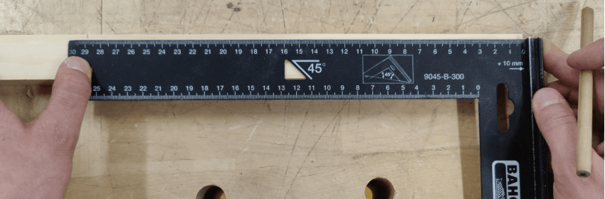Mittaa rimasta pala, jonka pituus on 29 cm. Sahaa pala kulmasahauslaitteella.