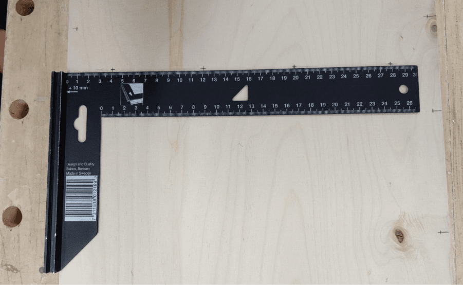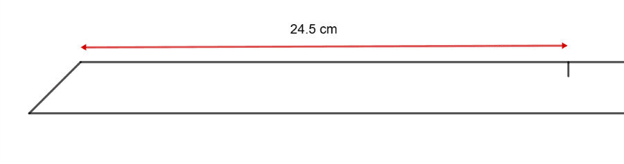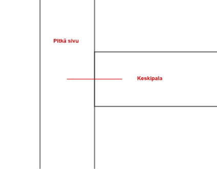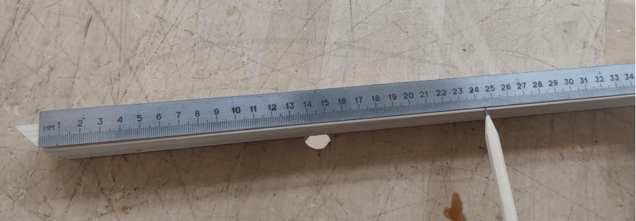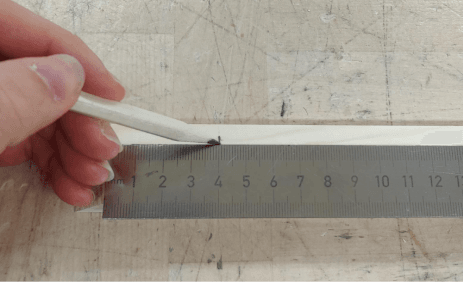 Aseta pitkä kappale syrjä pöytää vasten ja merkitse puoliväli (kappaleen päästä 24,5 cm).