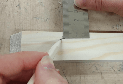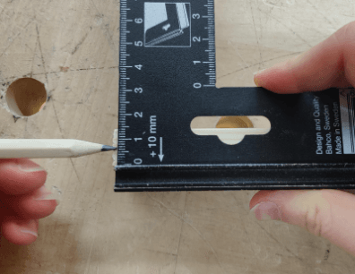 Aseta keskipala syrjä pöytää vasten ja piirrä merkki keskelle kappaletta, 7 mm päästä reunasta.