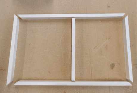 Sahaa yhdestä rimasta kuvan mukaisesti yksi lyhyt ja yksi pitkä kappale.