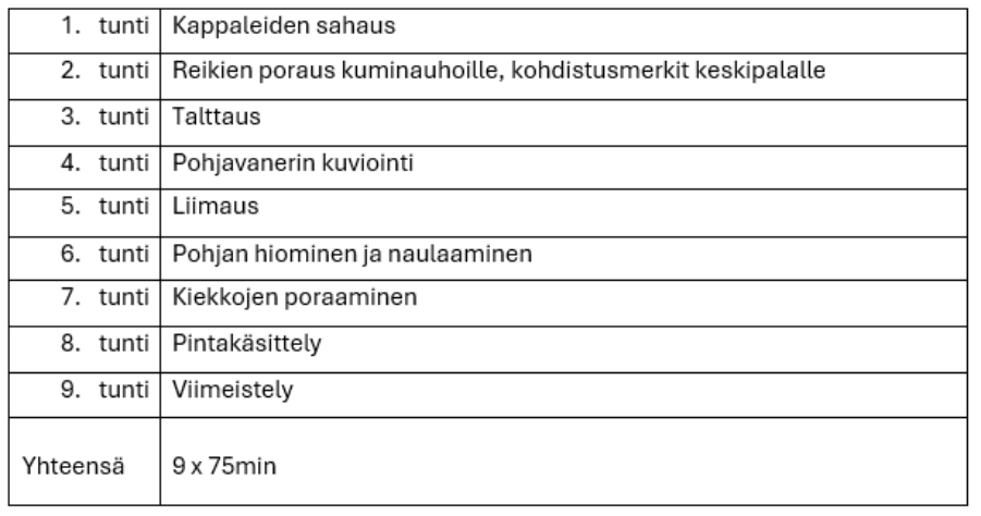 Oppilaan ajankäytön suunnitelma (75min oppitunnit):
