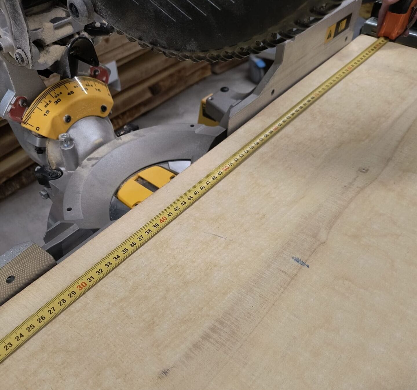 - Mittaa lankusta haluamasi leikkuulaudan pituinen + 5 cm työstövara pala.
