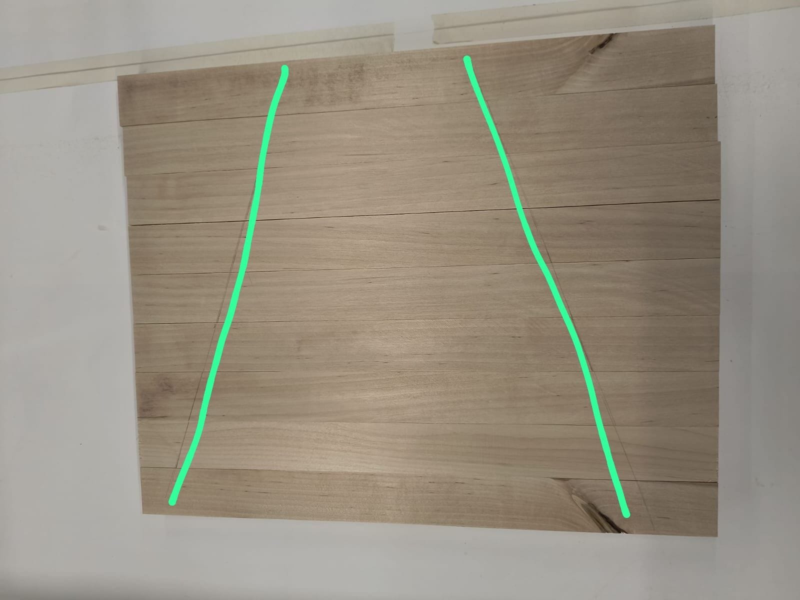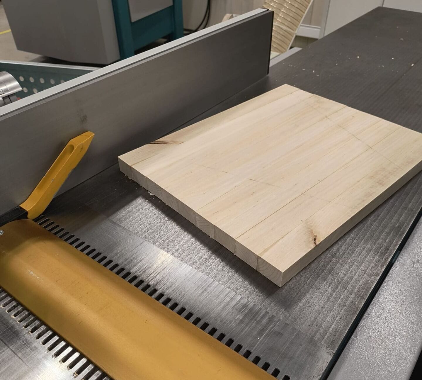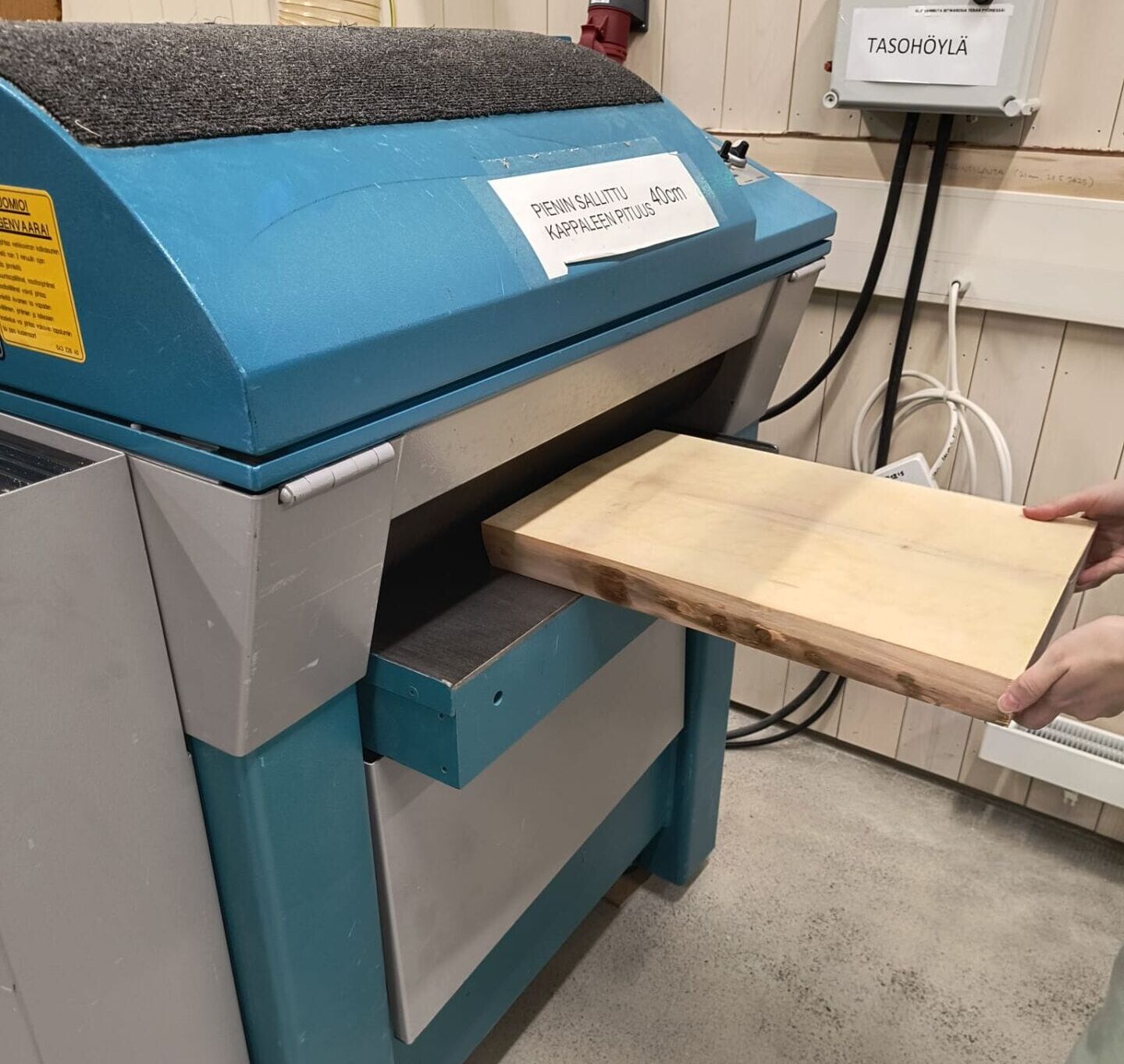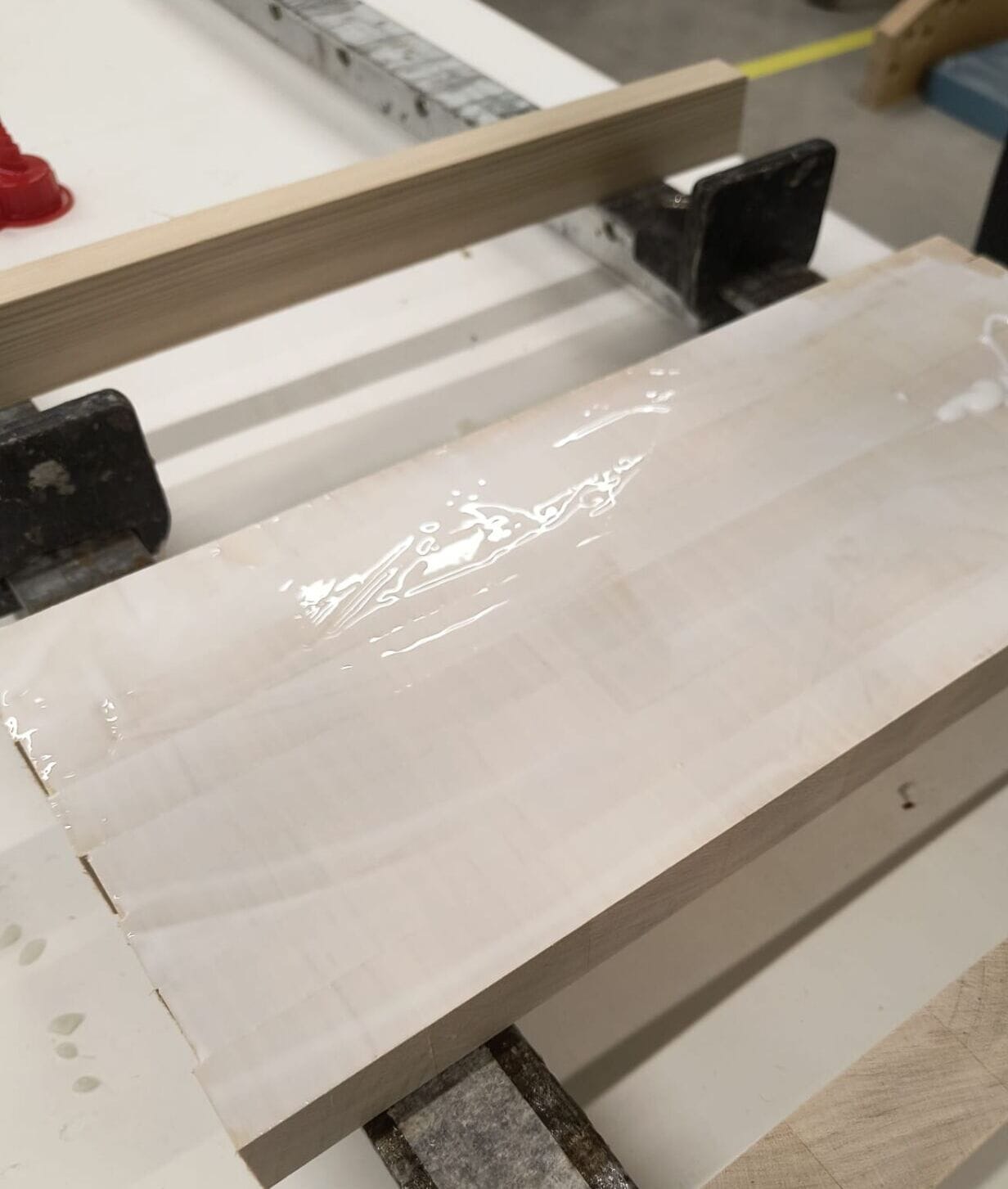 - Ensin tehdään hieman haluamiasi mittoja suurempi liimapuulevy, koska sitä työstäessä etenkin paksuus tulee pienenemään, mahdollisesti myös muut mitat. Näihin lisäyksiin tulee ohjeet myöhemmin.