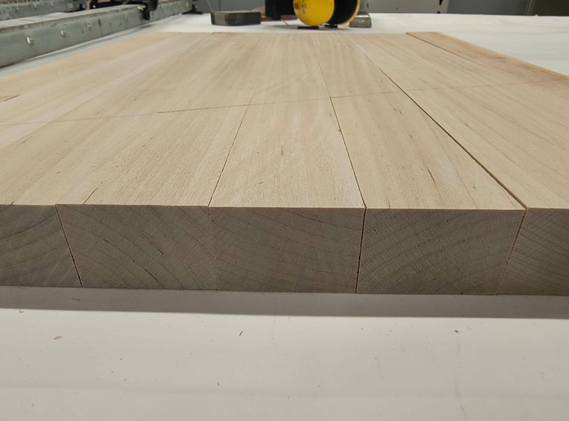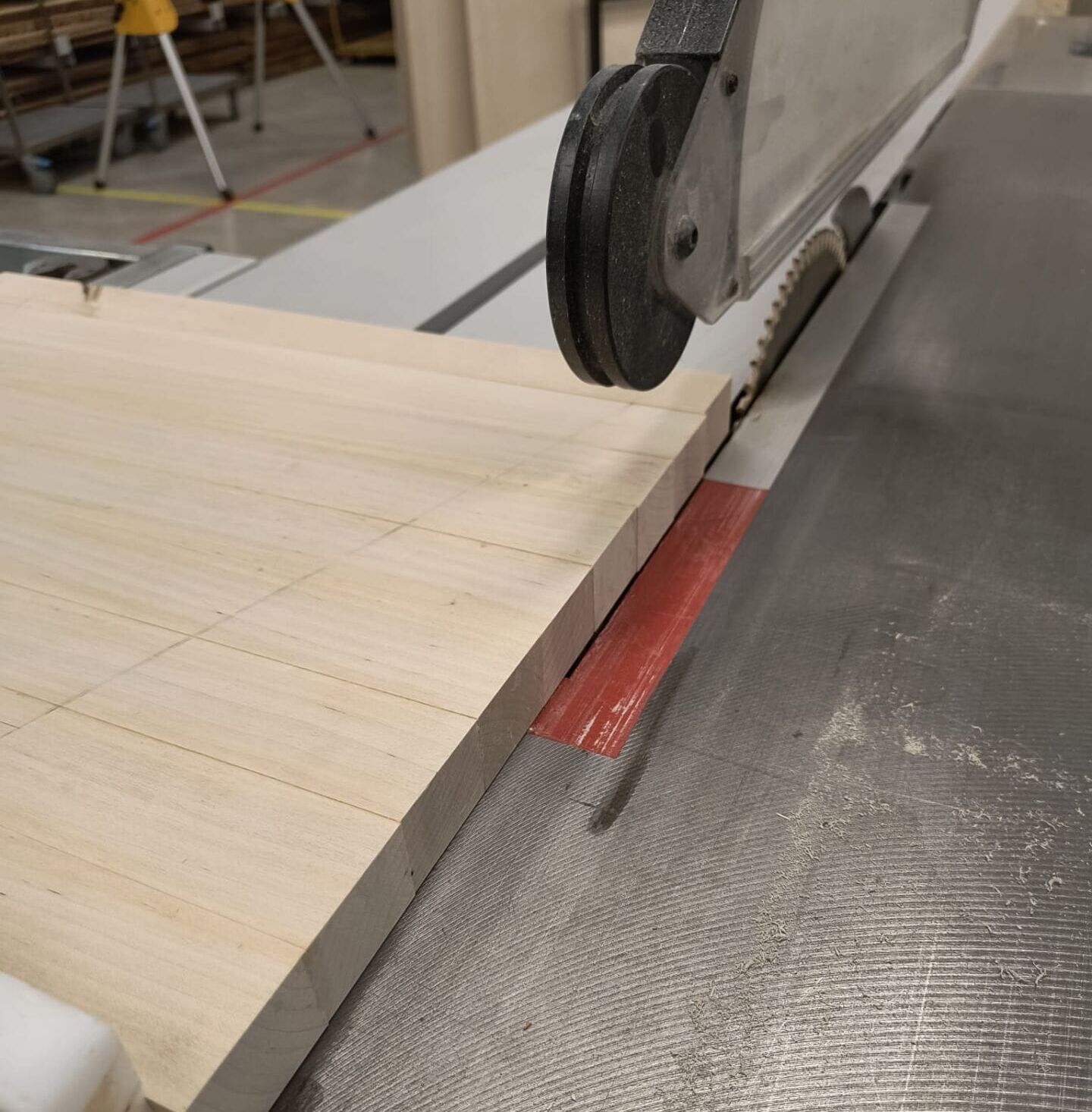 12. Halkaise pyörösahalla (tai vannesahalla) lankusta rimoja, jotka on 3-5mm paksumpia (=höyläysvara) kuin haluamasi leikkuulaudan lopullinen paksuus.