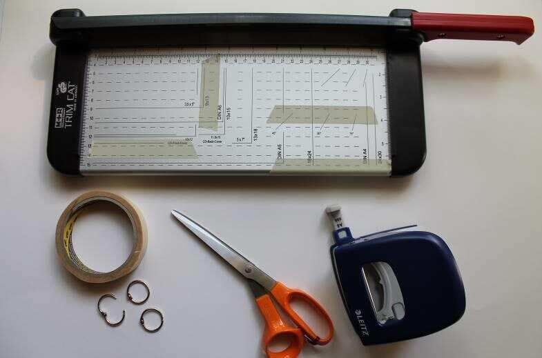- Tee valmiiksi leikattuihin sivuihin reiät paperirei'ittimellä: