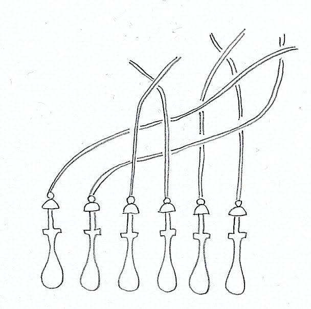 2. Kiinnitä langat nypylöiden silmukkaruuveihin.