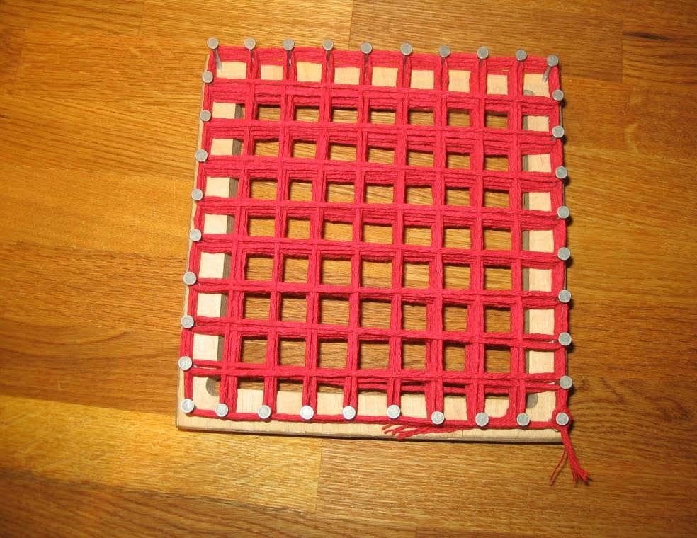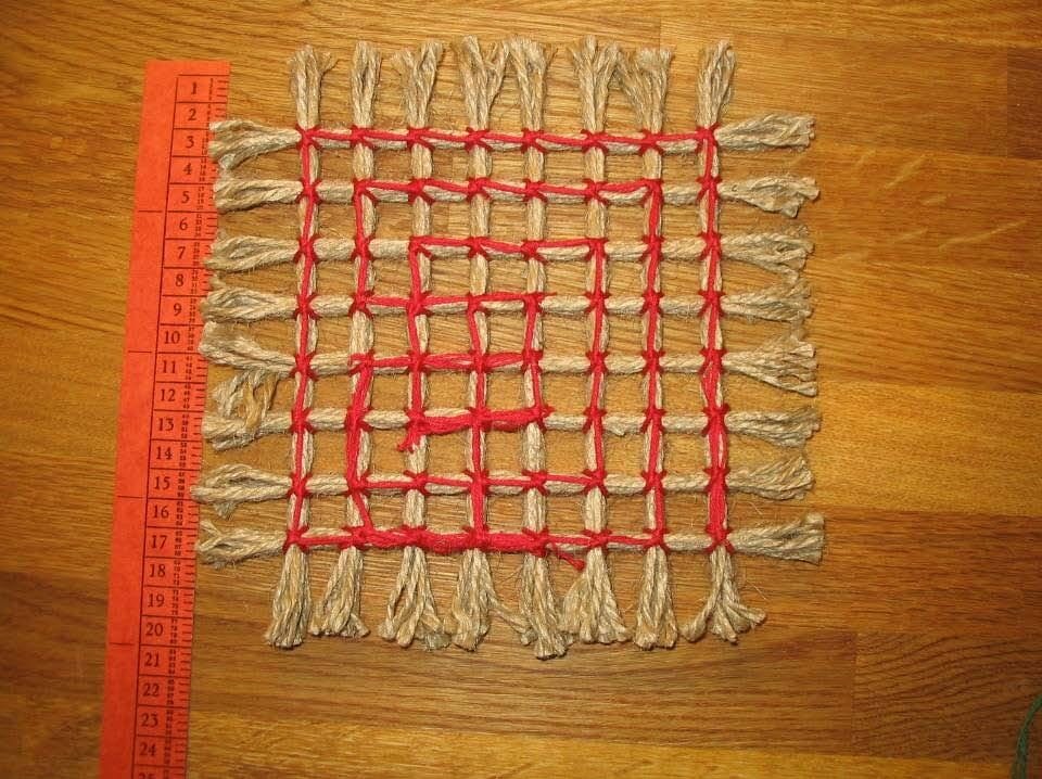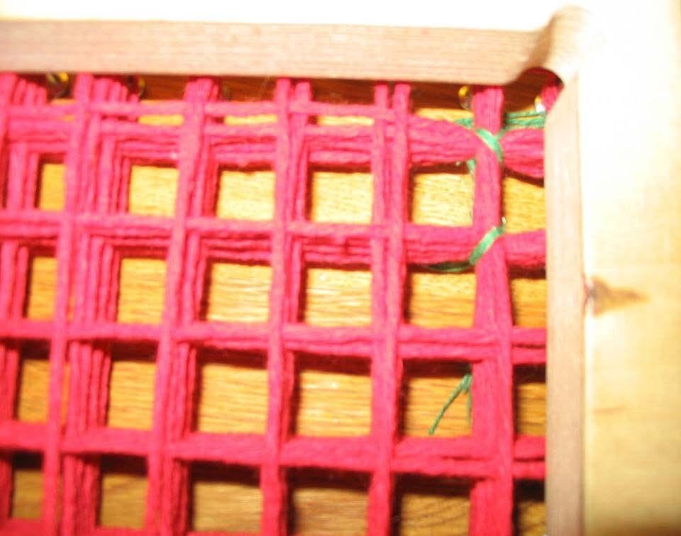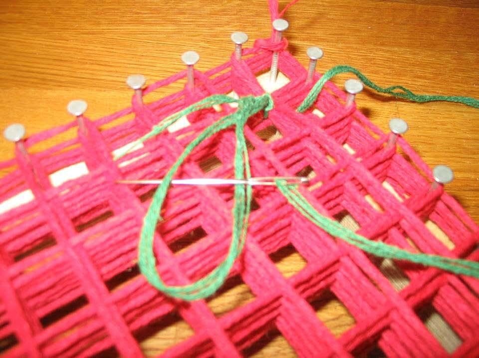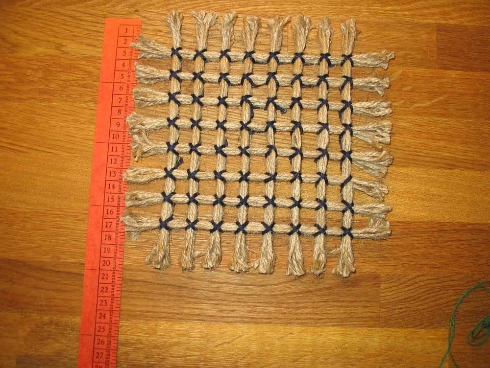 • risteyskohtien ompelu ristipistoilla, jotka kiristetään solmuilla