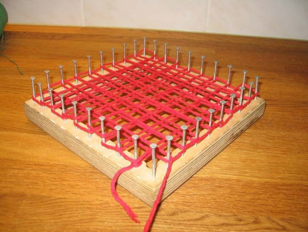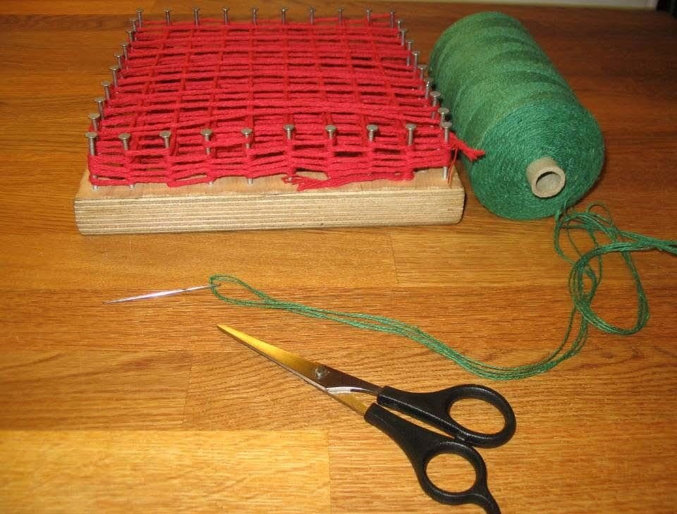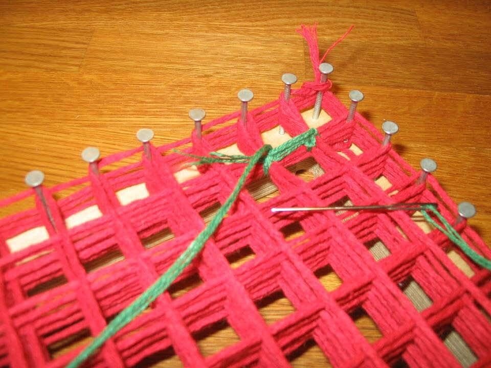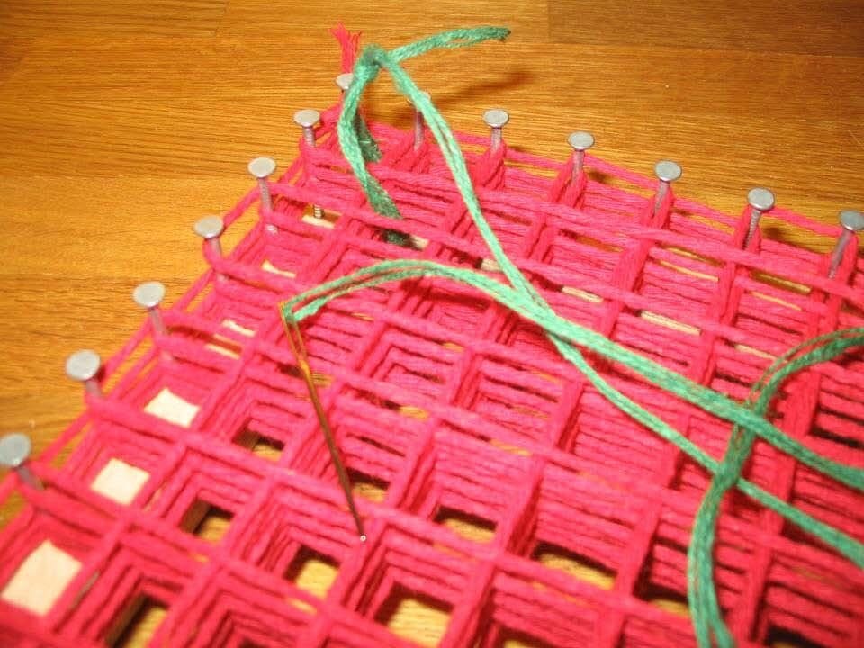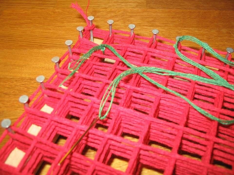 • risteyskohtien ompelu ristipistoilla, jotka kiristetään solmuilla