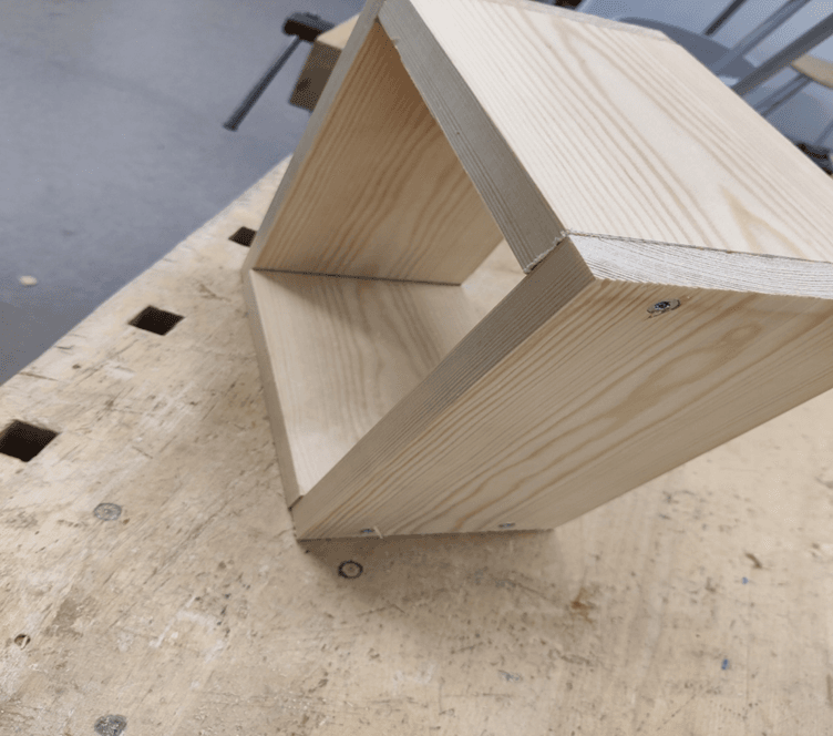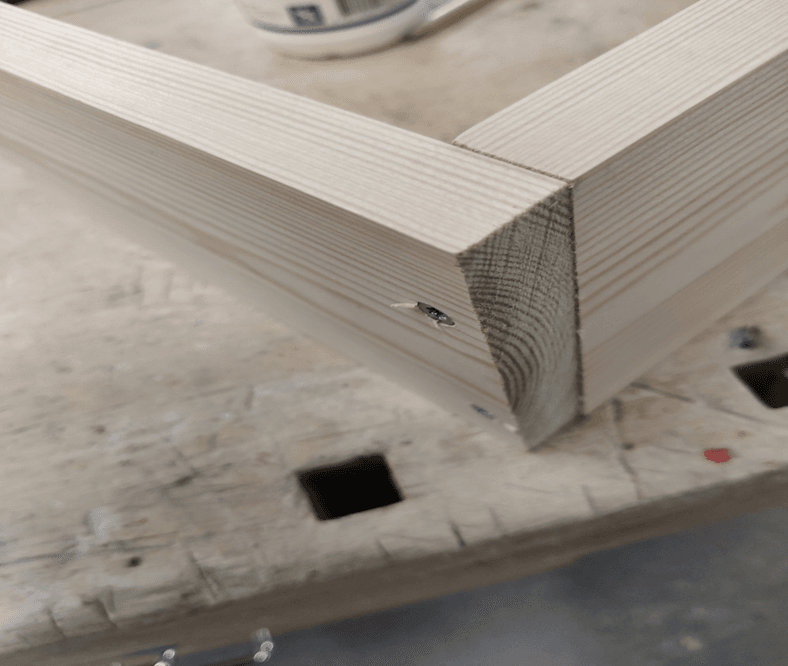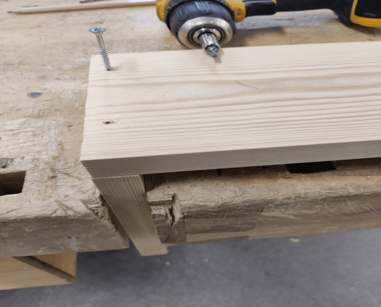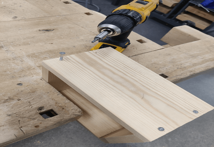 - Kohdista sivulauta päätylaudan päälle ja kiinnitä tarvittaessa paikalleen puristimella.
