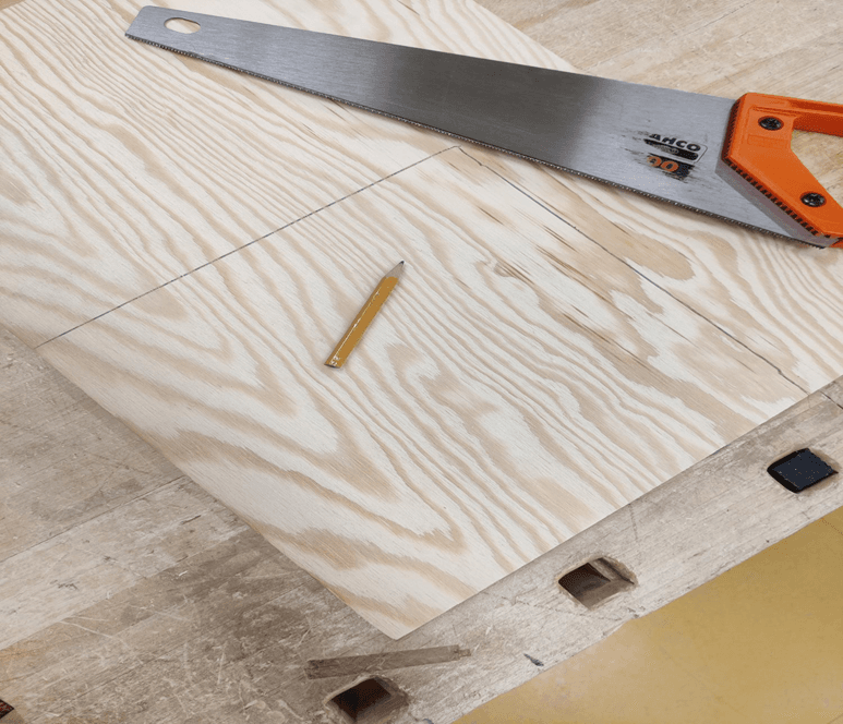 Sahaa laudat merkintöjen mukaisesti. (Huom. Sahaa viivan ulkoreunalta, ei päältä!)