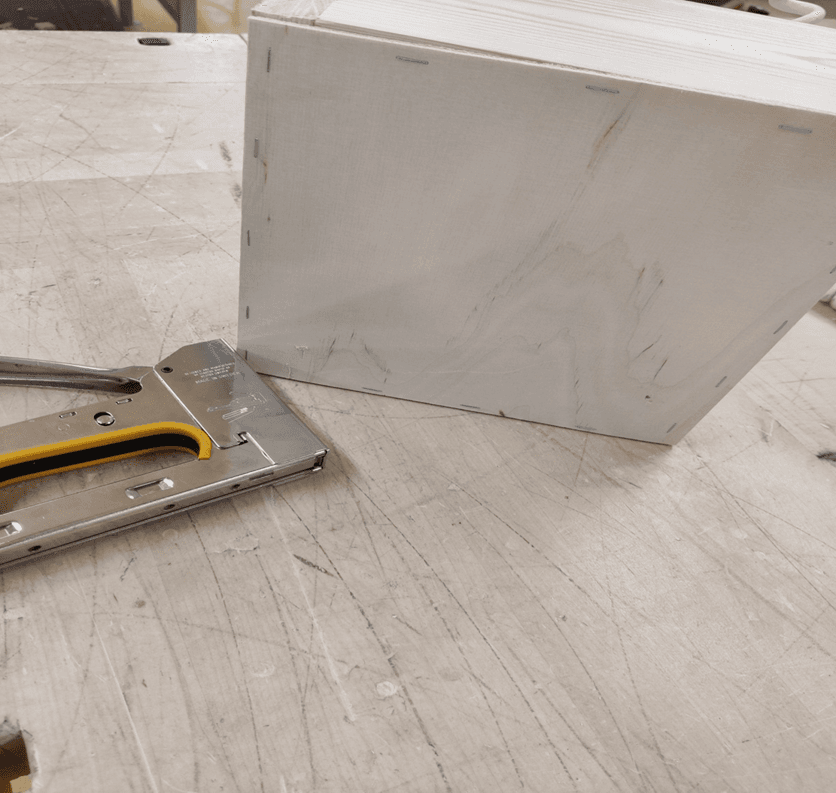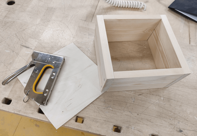 Kiinnitä pohja laatikon kehään nitojalla tai liimalla.