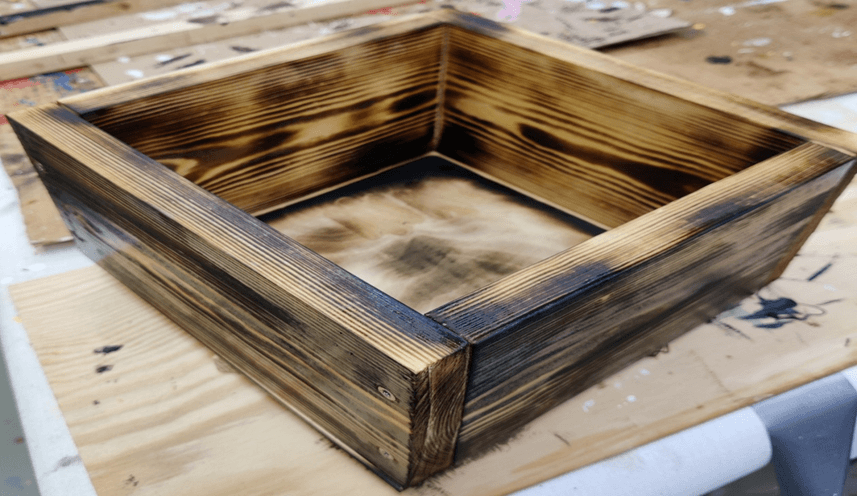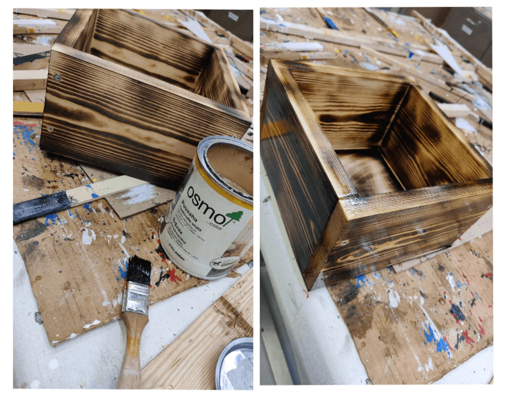 Laatikko voidaan halutessaan pintakäsitellä esimerkiksi polttamalla.