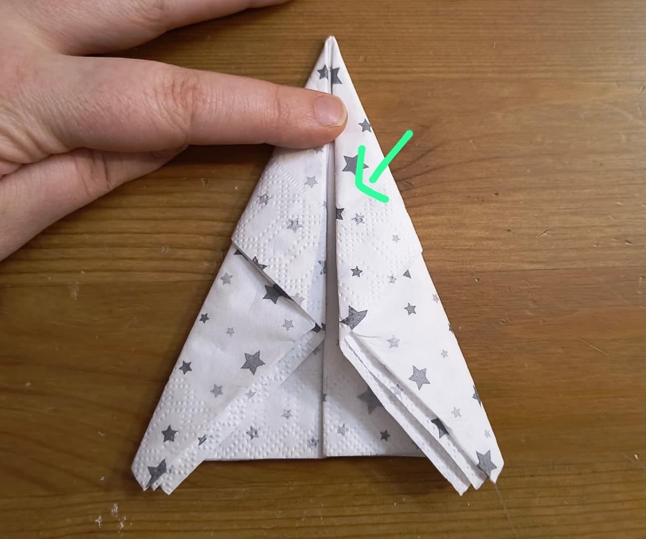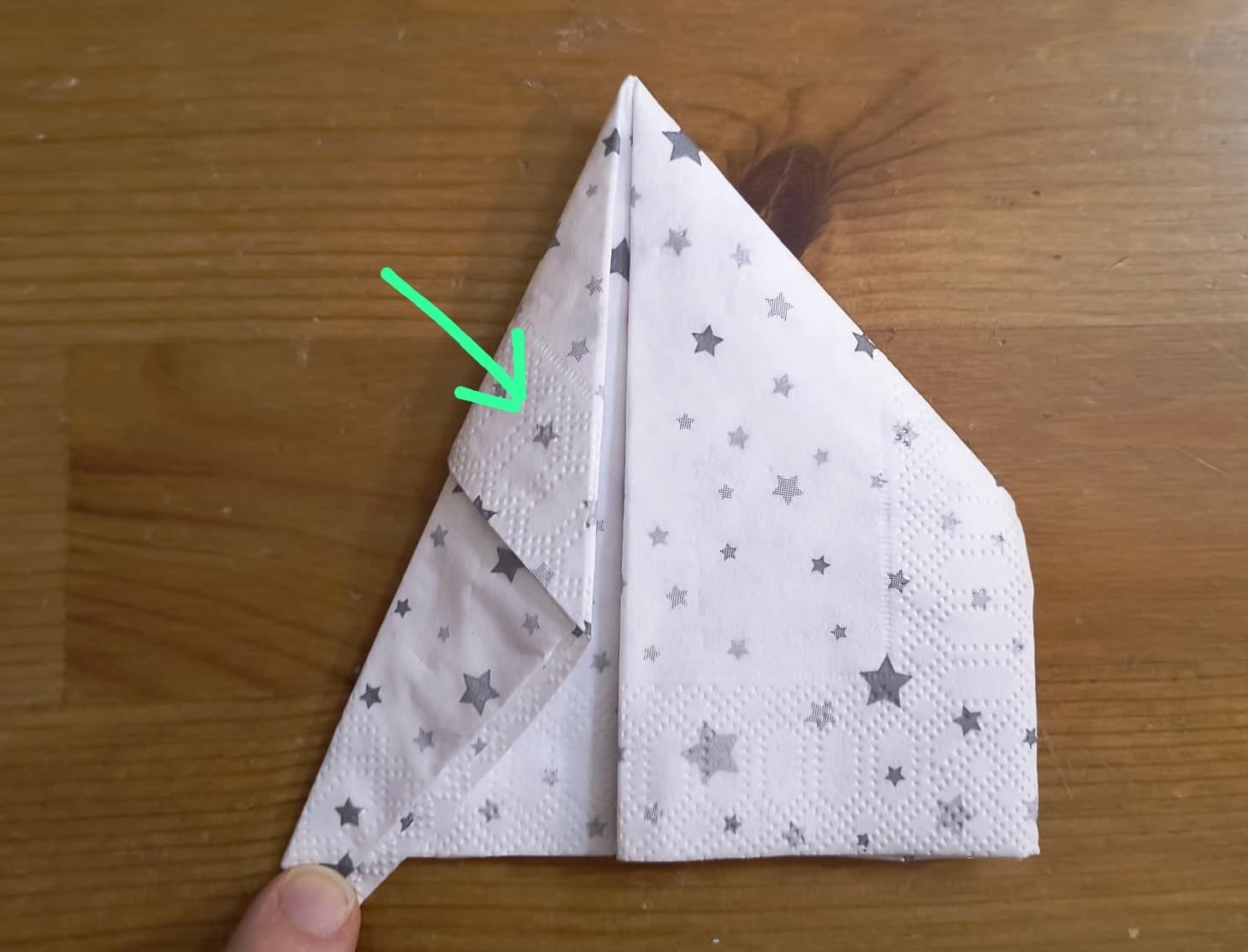 Käännä avoimesta reunasta päällimmäinen kerros suunnilleen kolmion kärjen "reunuksen" mukaisesti ylöspäin.