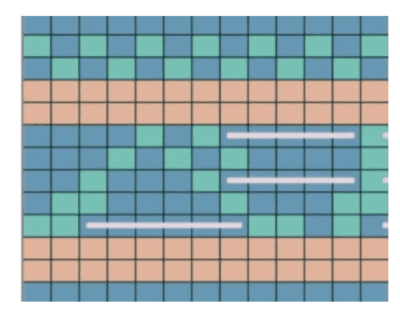 - Voit kertoa ohjelmalle, mikä saa olla kirjoneuleessa lankajuoksujen maksimipituus. Ohjelma näyttää kohdat joissa määrä ylittyy (DesignaKnit). Kuva alla: