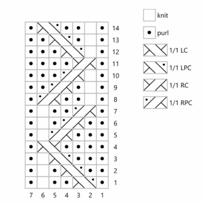 - vaihe: Luo piirtoalue, jonka leveys on 2 x mallikerran koko, tässä 16 s. Piirrä yksi mallikerta kavennuksineen. Väritä kaventuneet s:t valkoisiksi.
