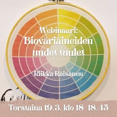 Luonnonväriaineiden kentällä on tapahtunut paljon: vuoden 2025 lopussa on aloittanut eurooppalainen luonnonväriaineisiin keskittyvä tohtorikoulu ja väriaineita sekä menetelmiä on kehitetty digitulostukseen ja uudenlaisiin vedettömiin värjäysmenetelmiin muiden muassa. Tule kuulemaan lisää webinaariin torstaina 19.3. klo 18-18.45!