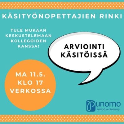 Ajankohtaisena aiheena on arviointi käsitöissä. Miten painottaa tuntityöskentelyä, portfoliota ja käsityötuotoksia? Mitä tehdä, kun on kahden numeron vaiheilla? Tule mukaan keskustelemaan muiden kollegoiden kanssa ja jakamaan niin vertaistukea kuin ideoita ja vinkkejäkin!