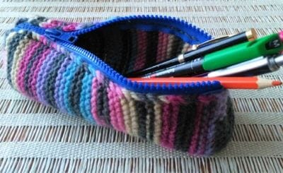 Neulottu vetoketjupussukka on käytännöllinen vaikkapa penaalina. Jos neulominen on tuttua, tämän avulla voi palauttaa sitä mieleen. Jos taas neulominen on uusi asia niin tämä ei ole nopea työ, mutta neulomista voi opetella samalla ja tehdä pussukan ensimmäisenä työnä, koska se on aloittelijoille helpompaa ainaoikeinneulosta.